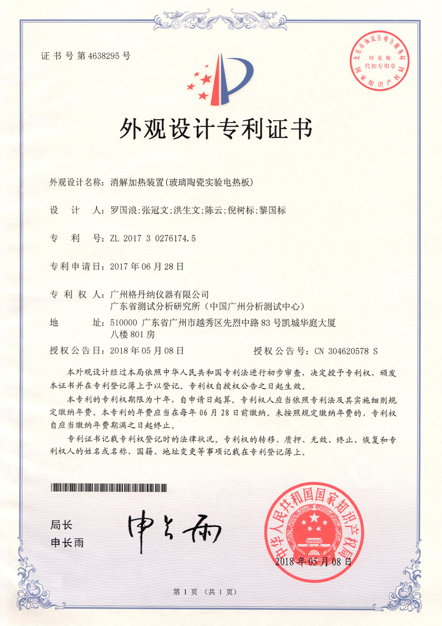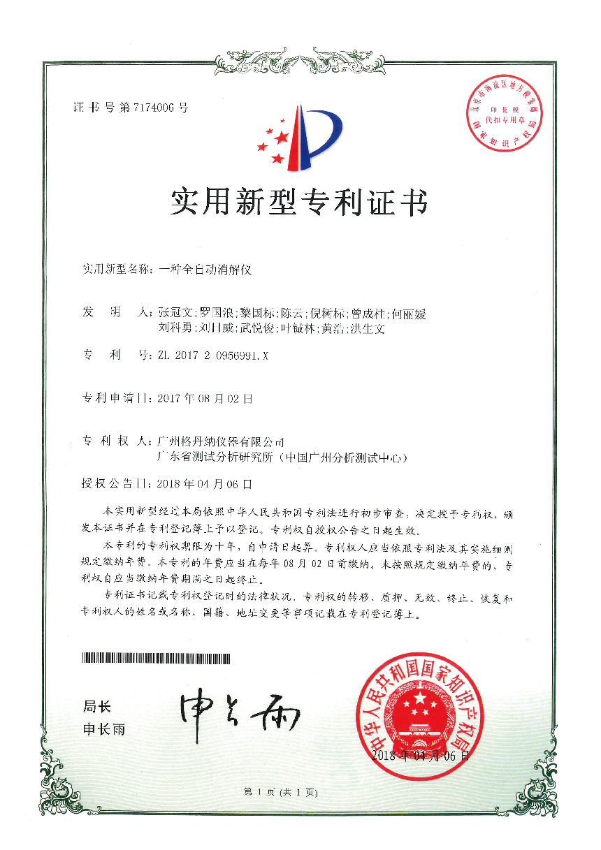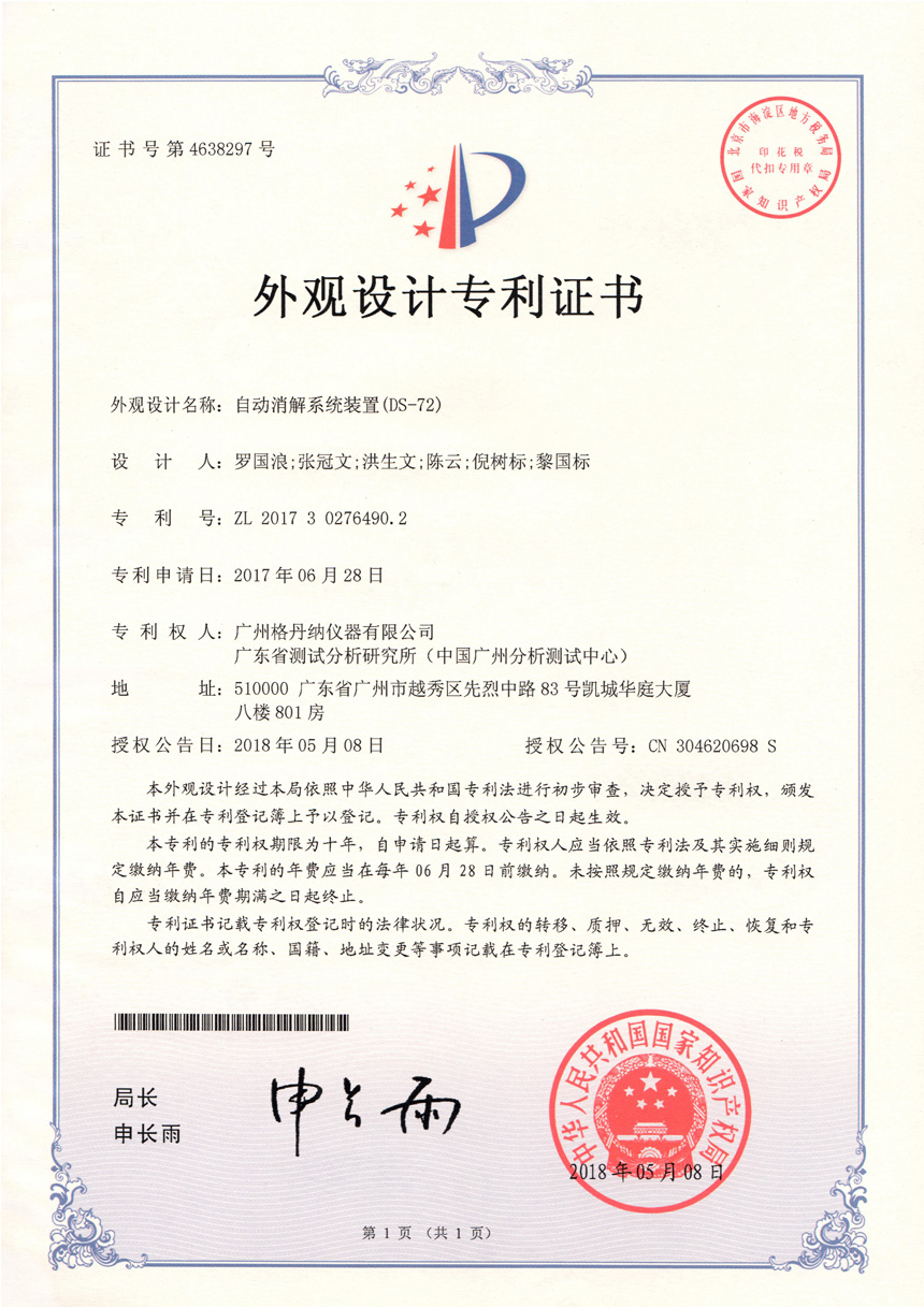 • 一種全自動(dòng)消解儀-實(shí)用新型專利證書