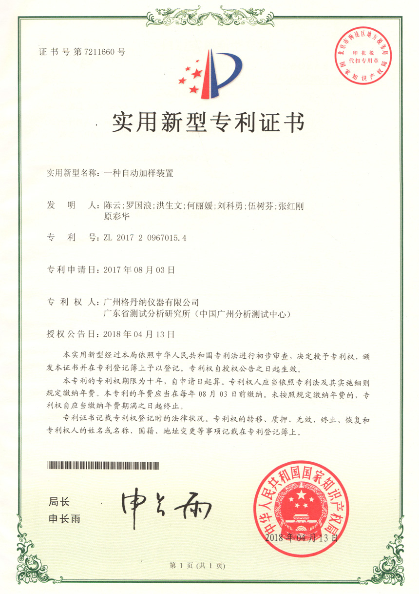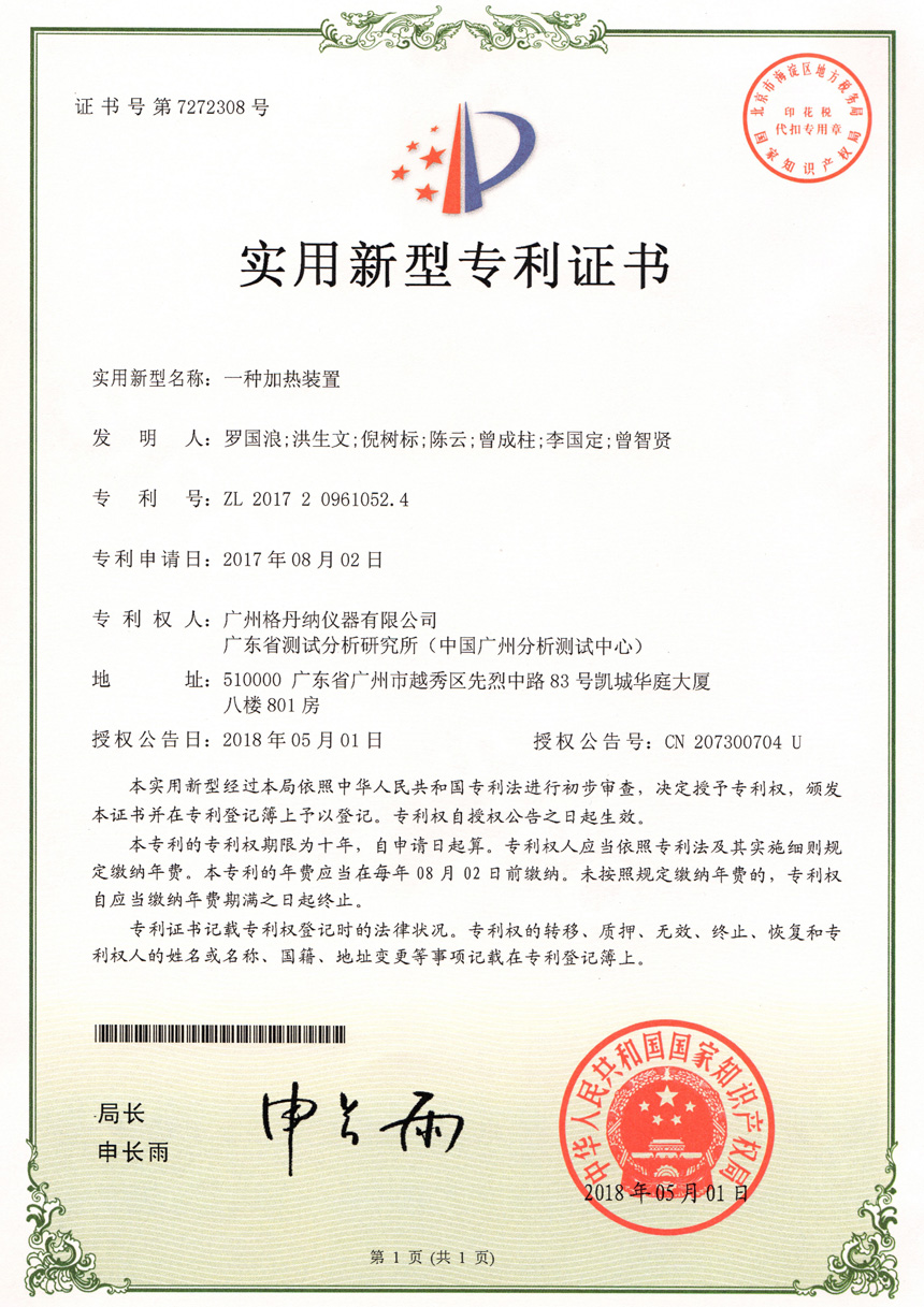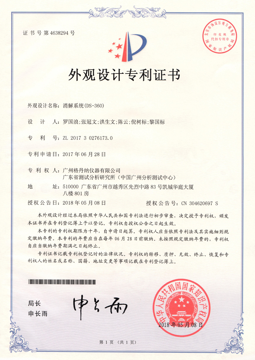 • 一種全自動(dòng)消解儀-實(shí)用新型專利證書